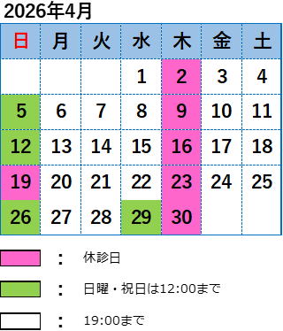 ※木曜日は休診日です。日・祝日の午後は休診です。