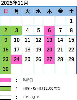 ※木曜日は休診日です。日・祝日の午後は休診です。